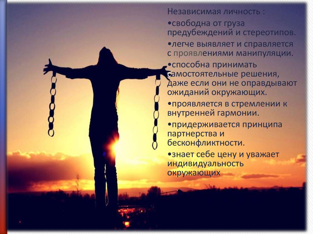 Независимая личность :•свободна от груза
