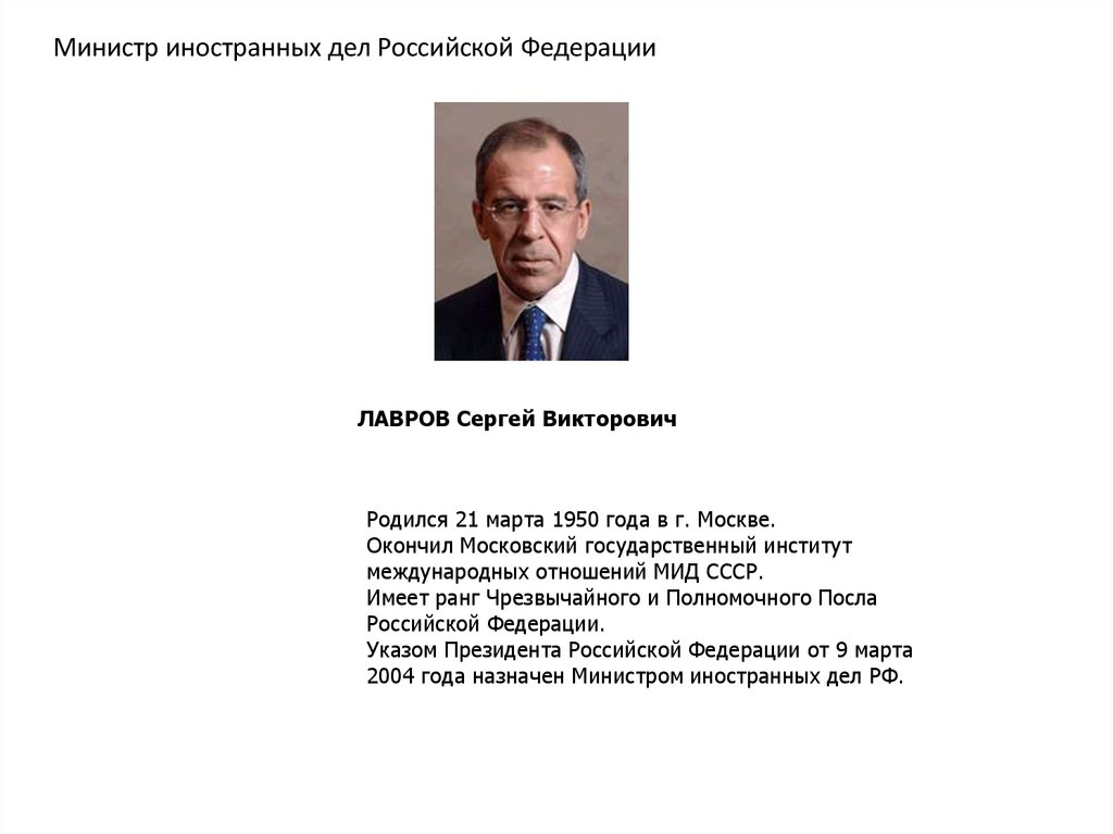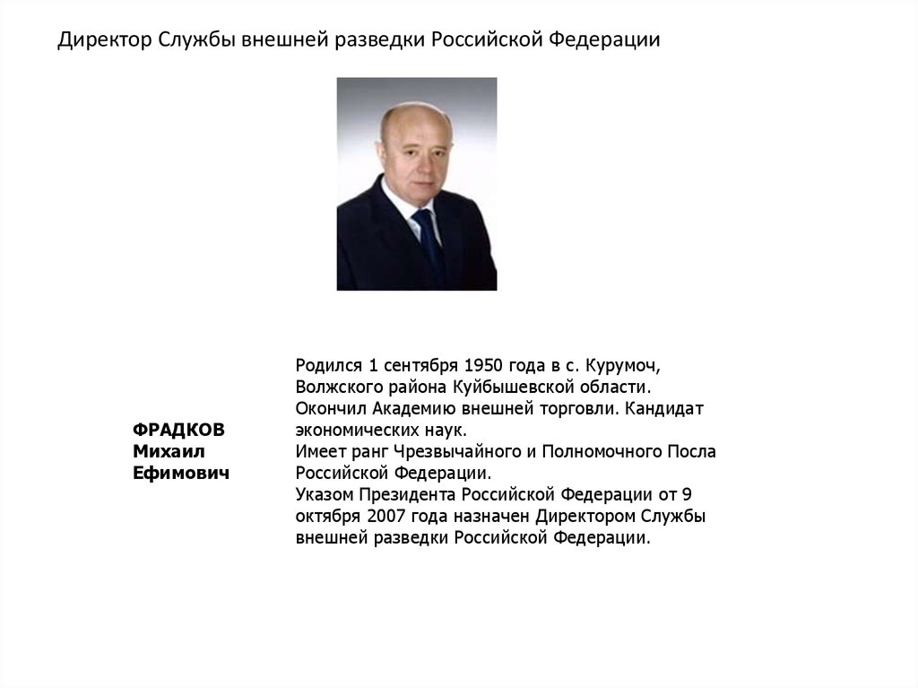 Директор Службы внешней разведки Российской ФедерацииФРАДКОВ
