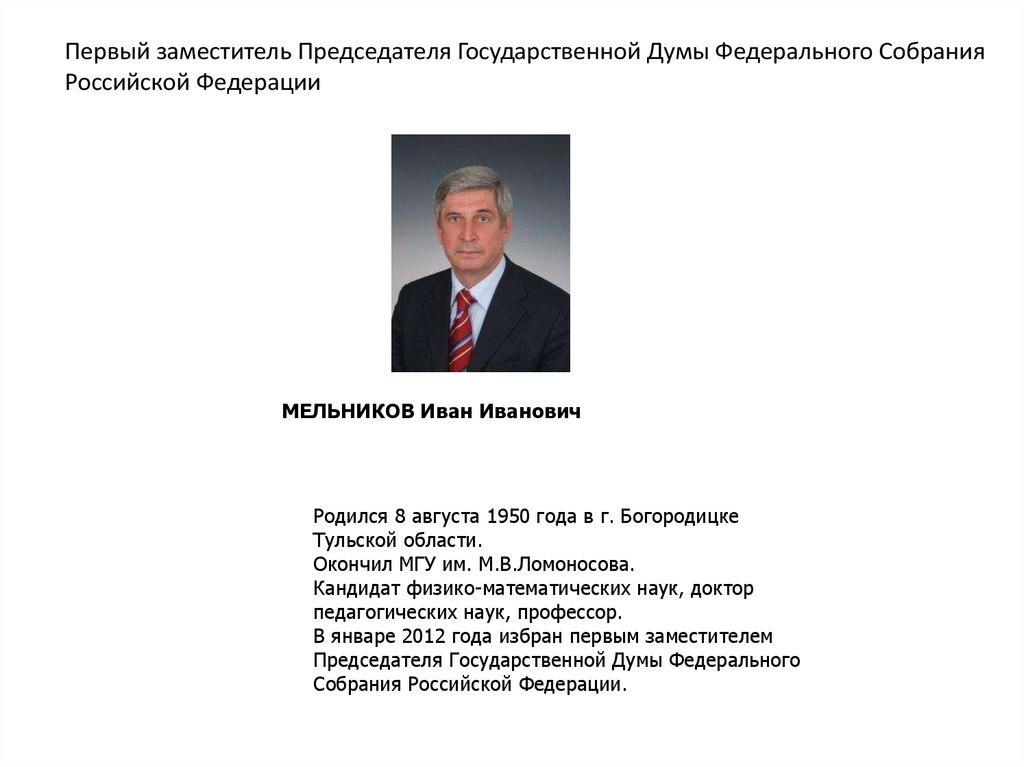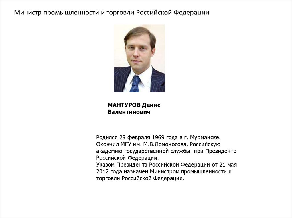 Федерации - первым заместителем Министра