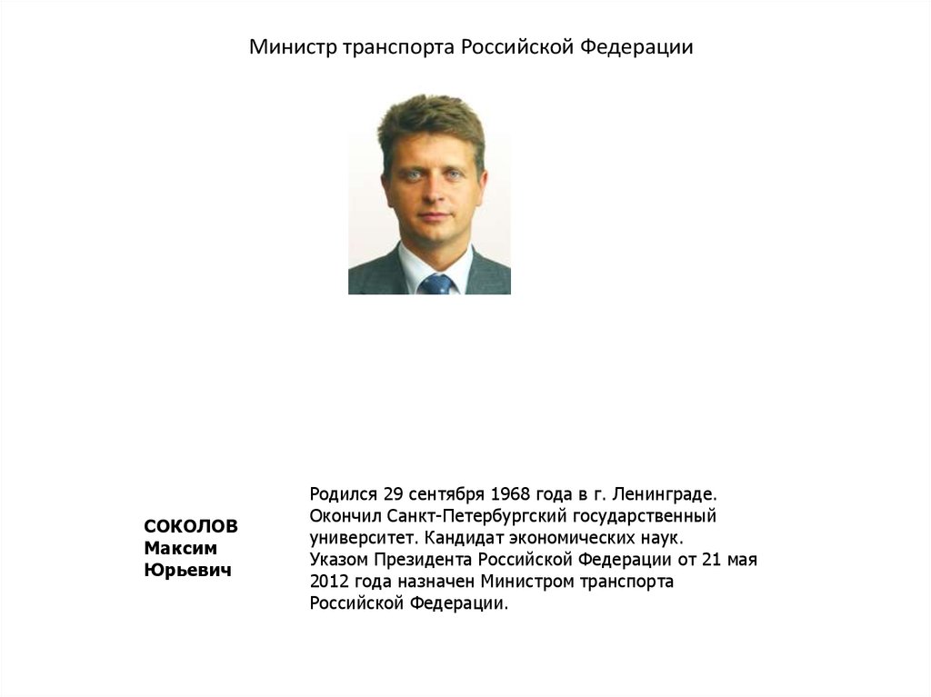 Министр транспорта Российской ФедерацииСОКОЛОВ