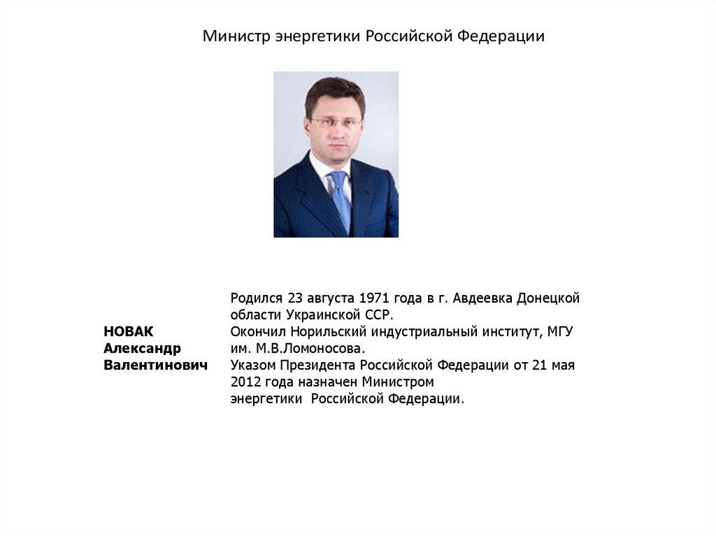 Министр энергетики Российской ФедерацииНОВАК