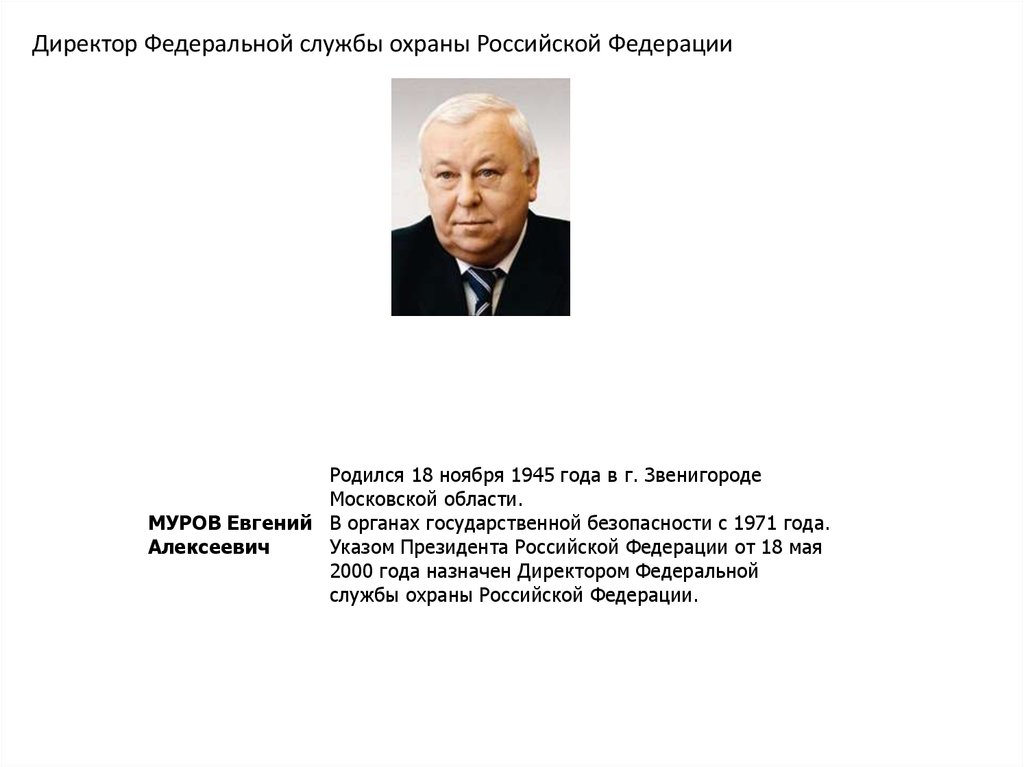 Директор Федеральной службы охраны Российской ФедерацииРодился 18 ноября 1945 года в г. Звенигороде