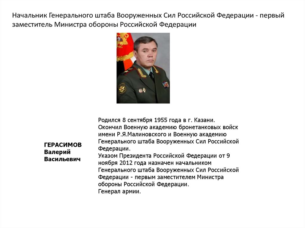 Начальник Генерального штаба Вооруженных Сил Российской Федерации - первыйзаместитель Министра обороны Российской Федерации