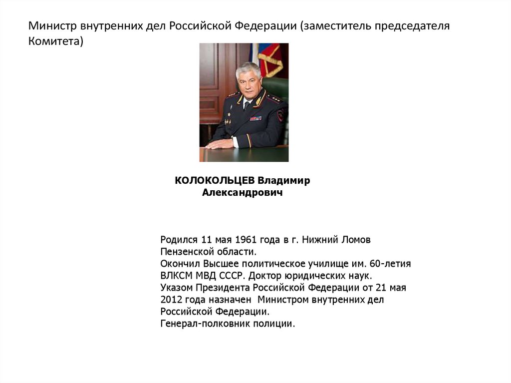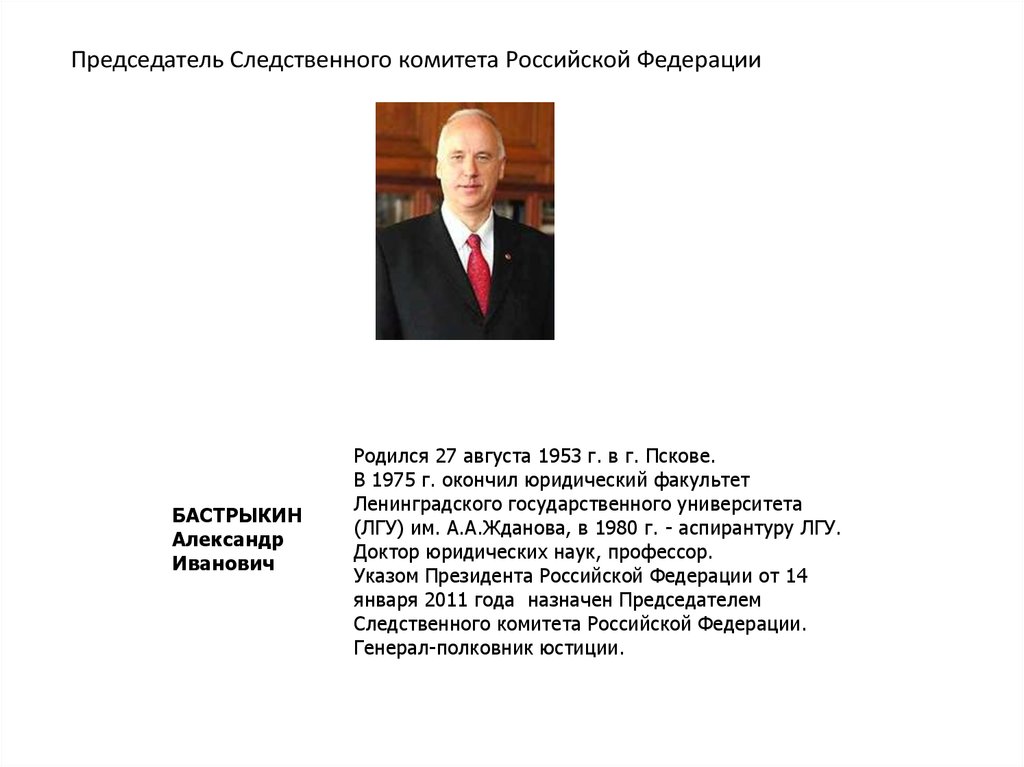 Председатель Следственного комитета Российской ФедерацииБАСТРЫКИН