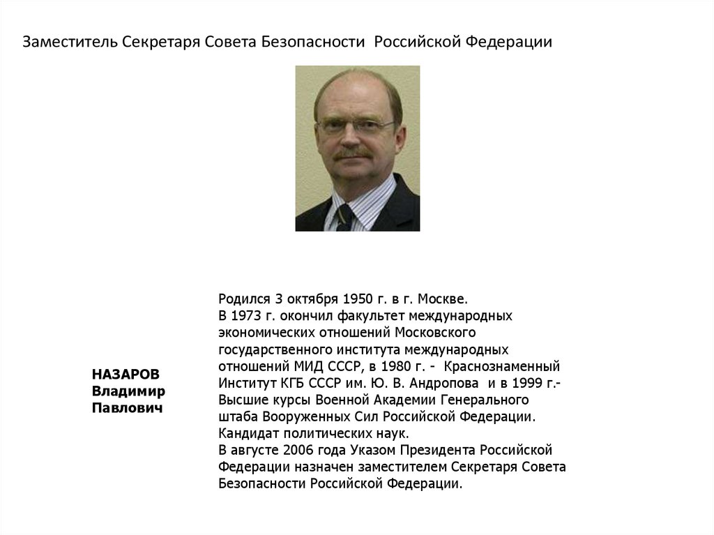 Заместитель Секретаря Совета Безопасности Российской ФедерацииНАЗАРОВ