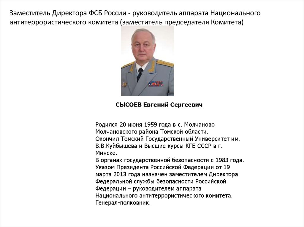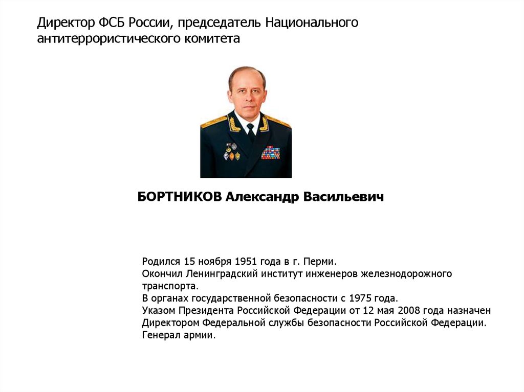 Директор ФСБ России, председатель Национальногоантитеррористического комитета