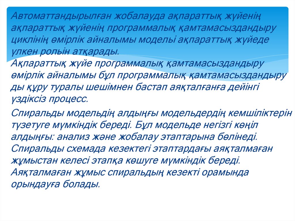 алдыңғы: анализ және жобалау этаптарына бөлінеді.
