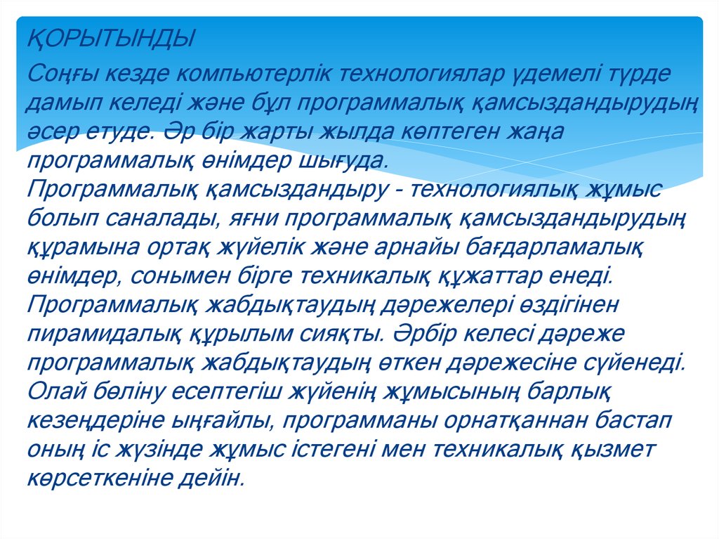 ҚОРЫТЫНДЫСоңғы кезде компьютерлік технологиялар үдемелі түрде