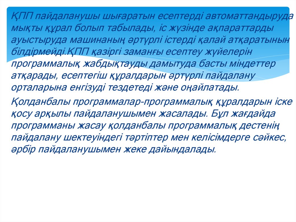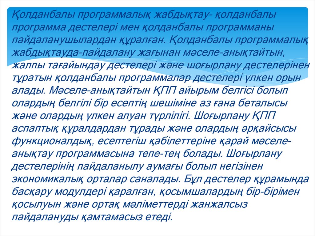 Қолданбалы программалық жабдықтау- қолданбалыпрограмма дестелері мен қолданбалы программаны