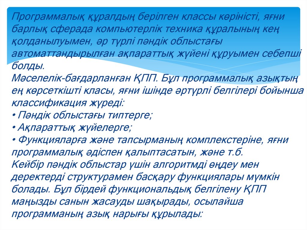 Мәселелік-бағдарланған ҚПП. Бұл программалық азықтың