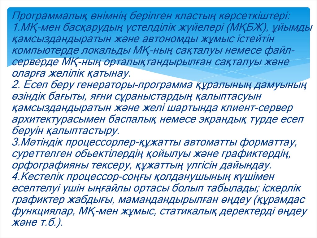 Программалық құралдың берілген классы көріністі, яғнибарлық сферада компьютерлік техника құралының кең