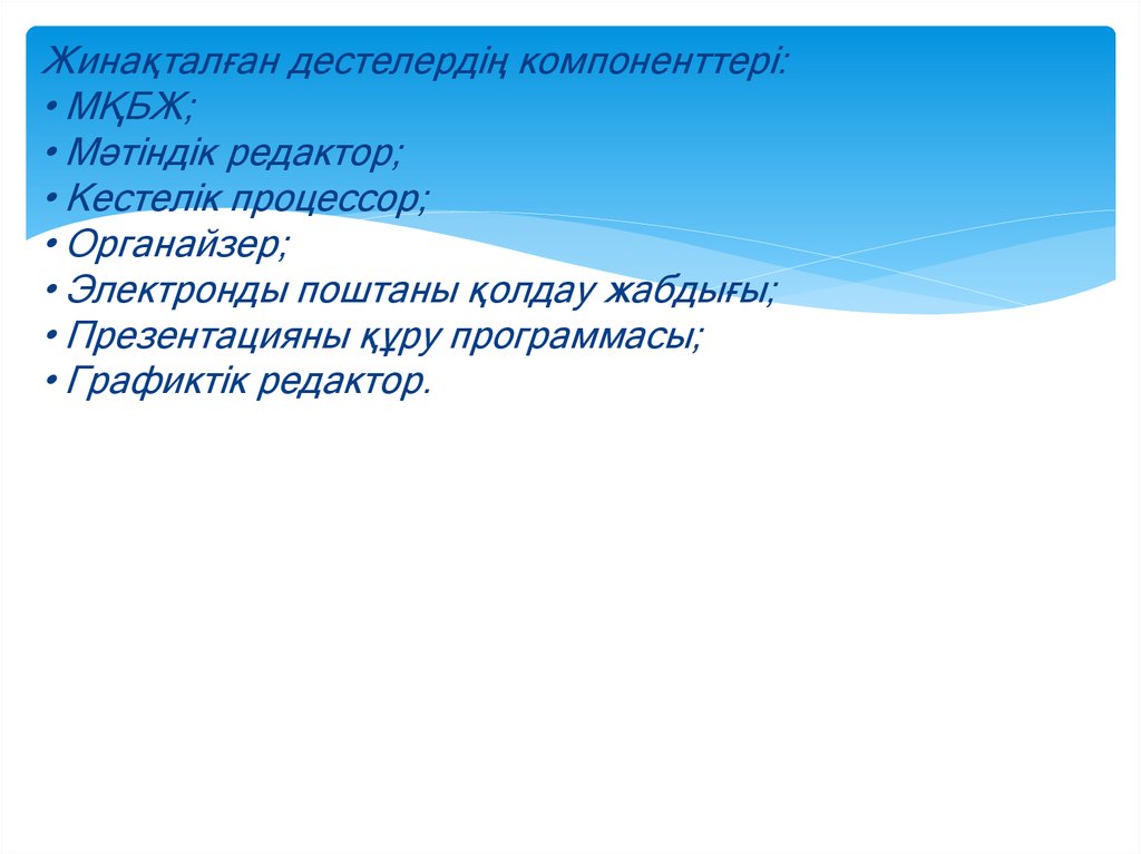 Жинақталған дестелердің компоненттері:• МҚБЖ;