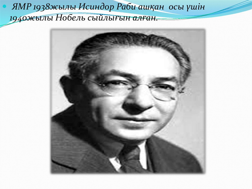 ЯМР 1938жылы Исиндор Раби ашқан осы үшін1940жылы Нобель сыйлығын алған.