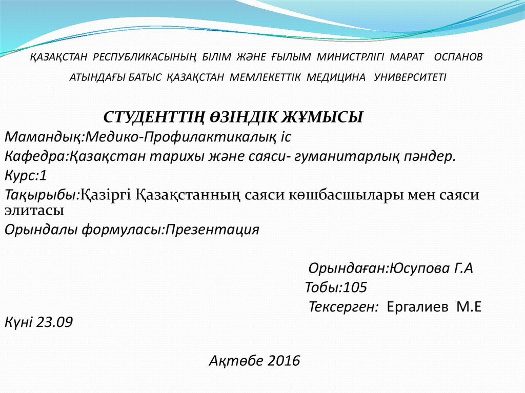 Тақырыбы:Қазіргі Қазақстанның саяси көшбасшылары мен саяси
