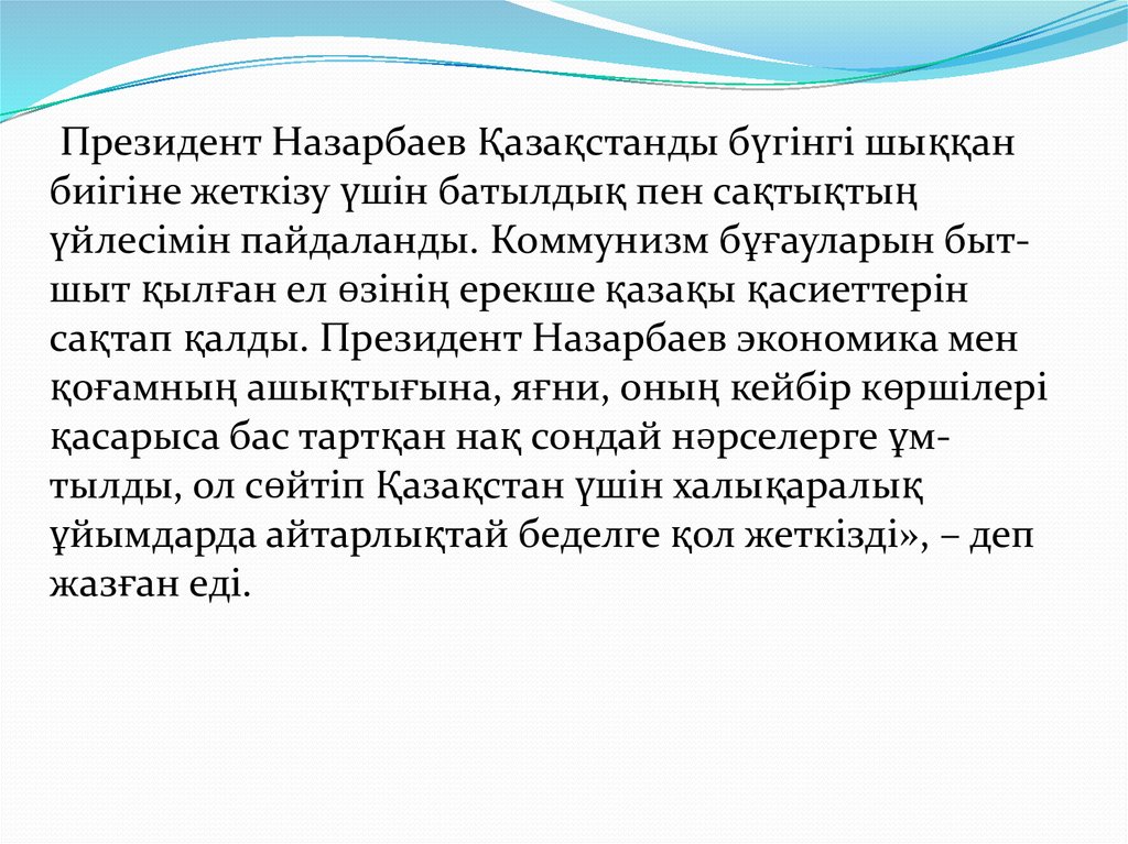 келеді, aл Нұрсұлтан Назарбаевты толық мәнінде осы