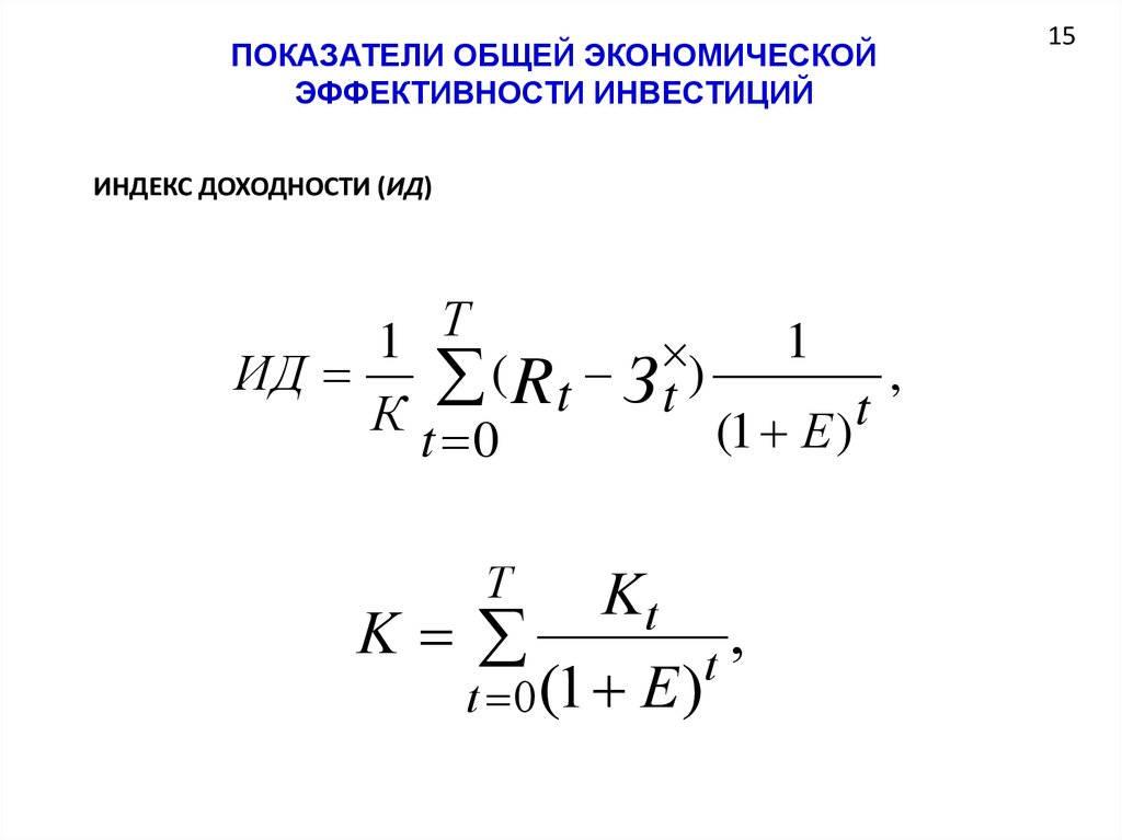 ПОКАЗАТЕЛИ ОБЩЕЙ ЭКОНОМИЧЕСКОЙЭФФЕКТИВНОСТИ ИНВЕСТИЦИЙ