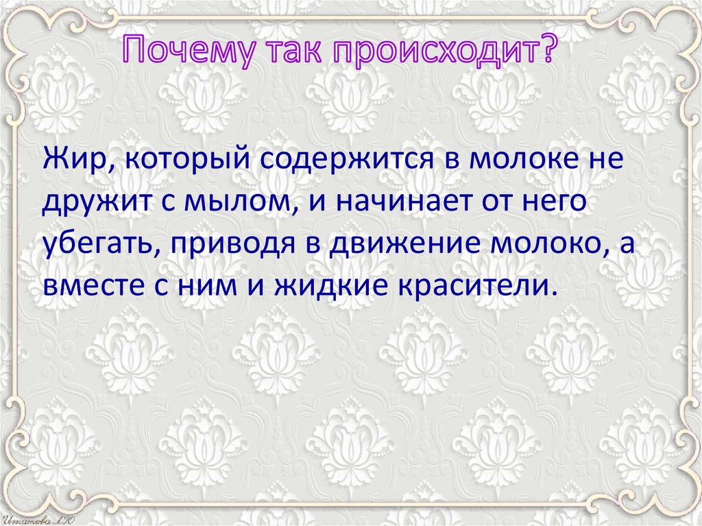 Жир, который содержится в молоке недружит с мылом, и начинает от него