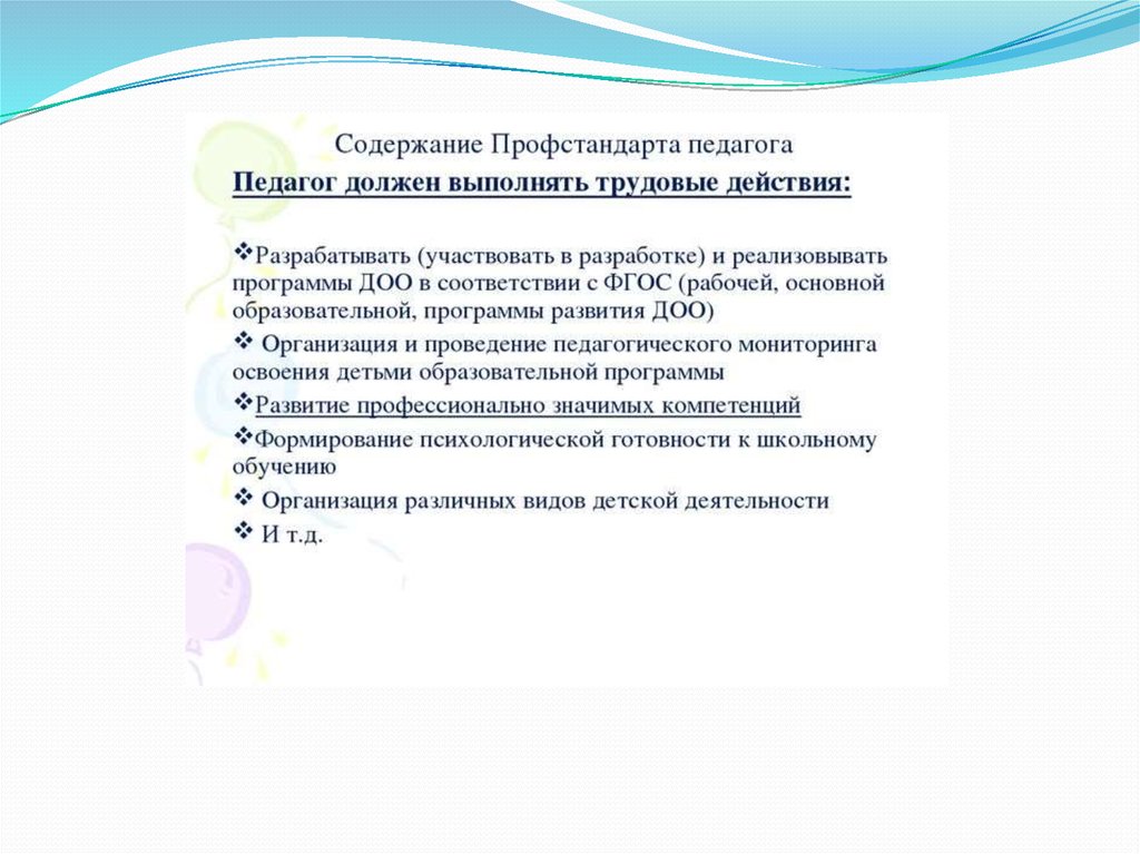 ПРофессиональный стандарт. Компетентности педагога в условиях реализации ФГОС ДО