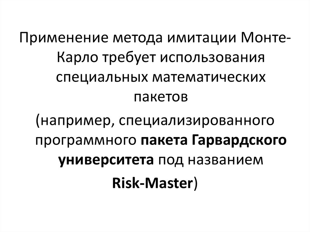 Применение метода имитации МонтеКарло требует использованияспециальных математических