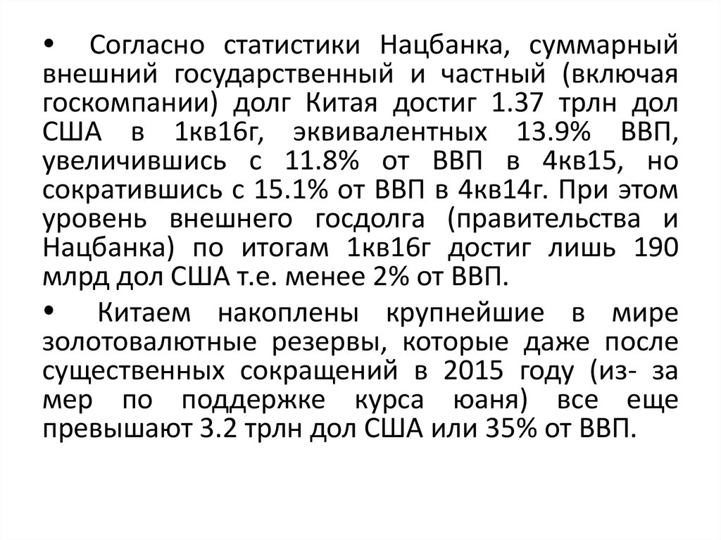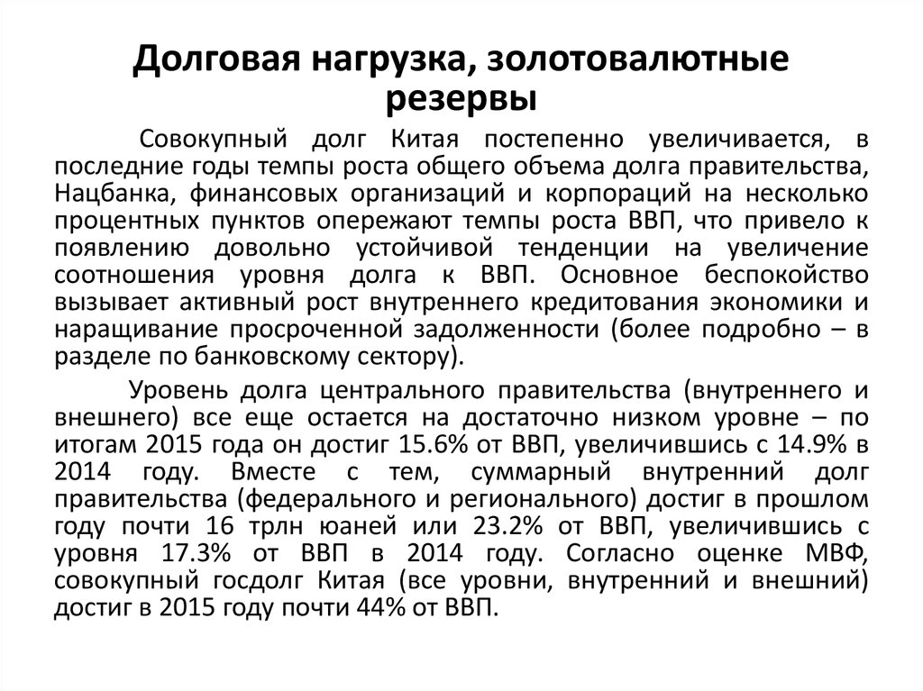 • Уровень совокупного госдолга составляет примерно 44% от ВВП;