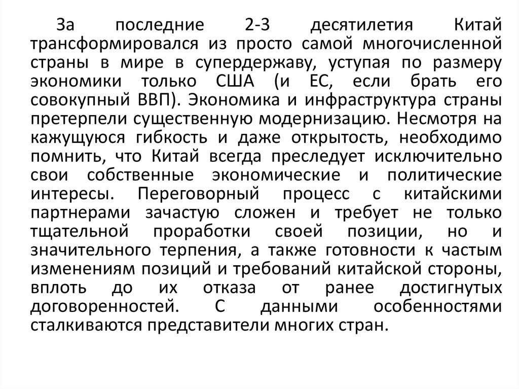 интересы. Переговорный процесс с китайскими