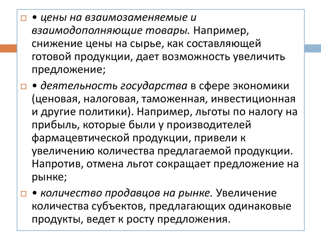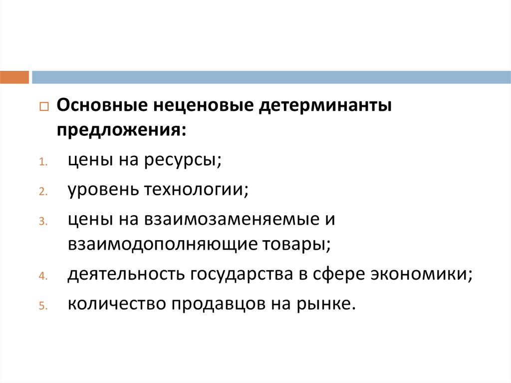 К первостепенным ценовым детерминантам предложенияотносятся: