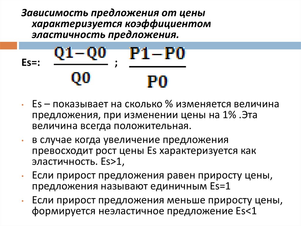 Зависимость предложения от ценыхарактеризуется коэффициентом