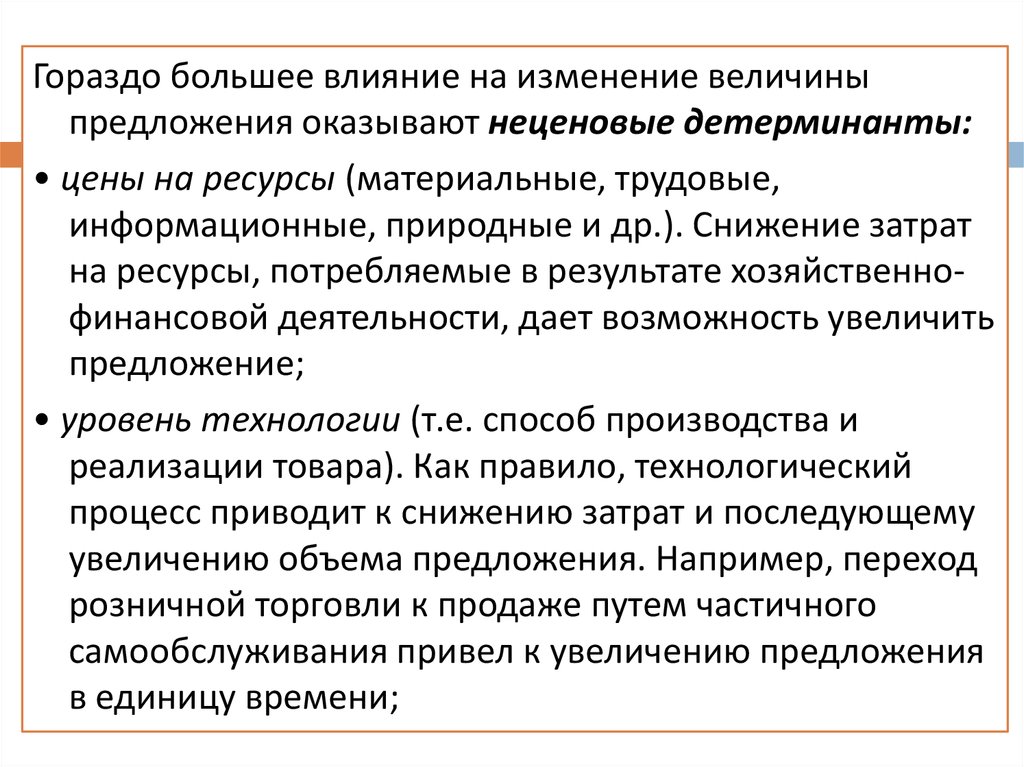Гораздо большее влияние на изменение величиныпредложения оказывают неценовые детерминанты: