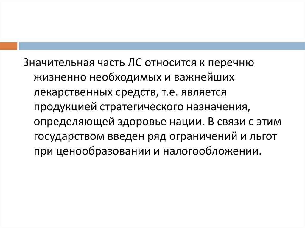 Значительная часть ЛС относится к перечнюжизненно необходимых и важнейших