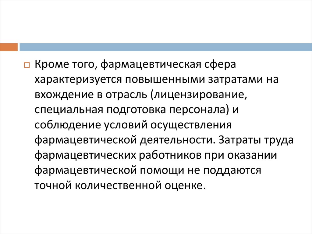 Кроме того, фармацевтическая сферахарактеризуется повышенными затратами на