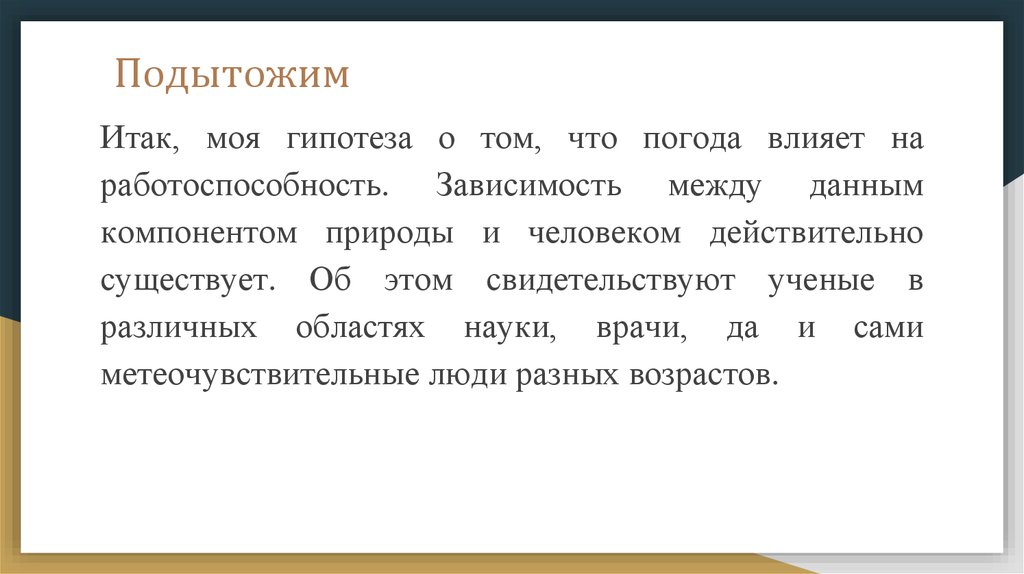 ПодытожимИтак, моя гипотеза о том, что погода влияет на