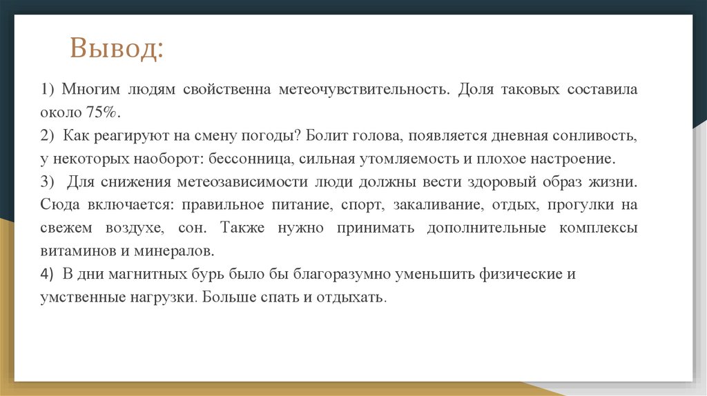 3) Для снижения метеозависимости люди должны вести здоровый образ жизни.