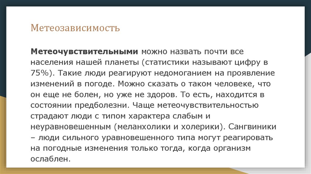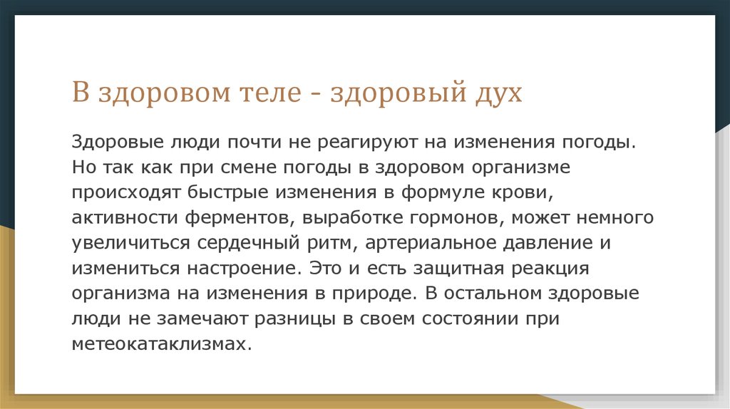 В здоровом теле - здоровый духЗдоровые люди почти не реагируют на изменения погоды.