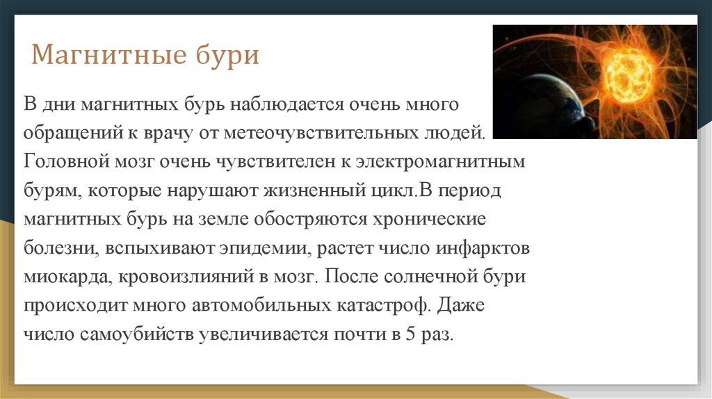 Магнитные буриВ дни магнитных бурь наблюдается очень много