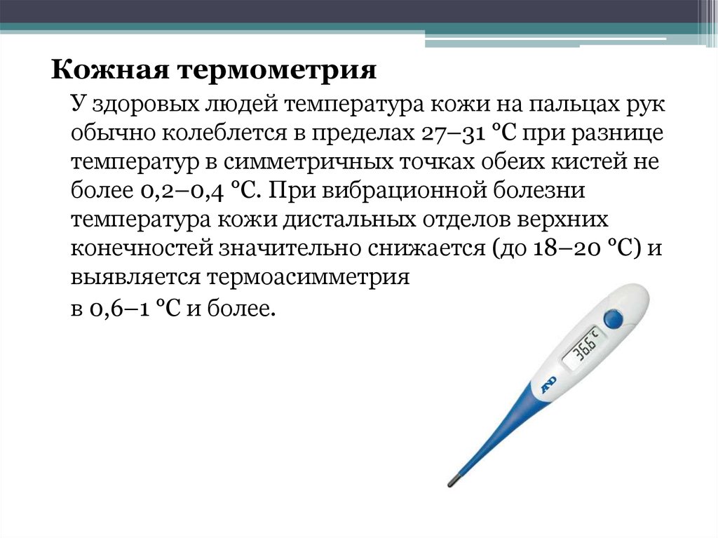 Кожная термометрияУ здоровых людей температура кожи на пальцах рук