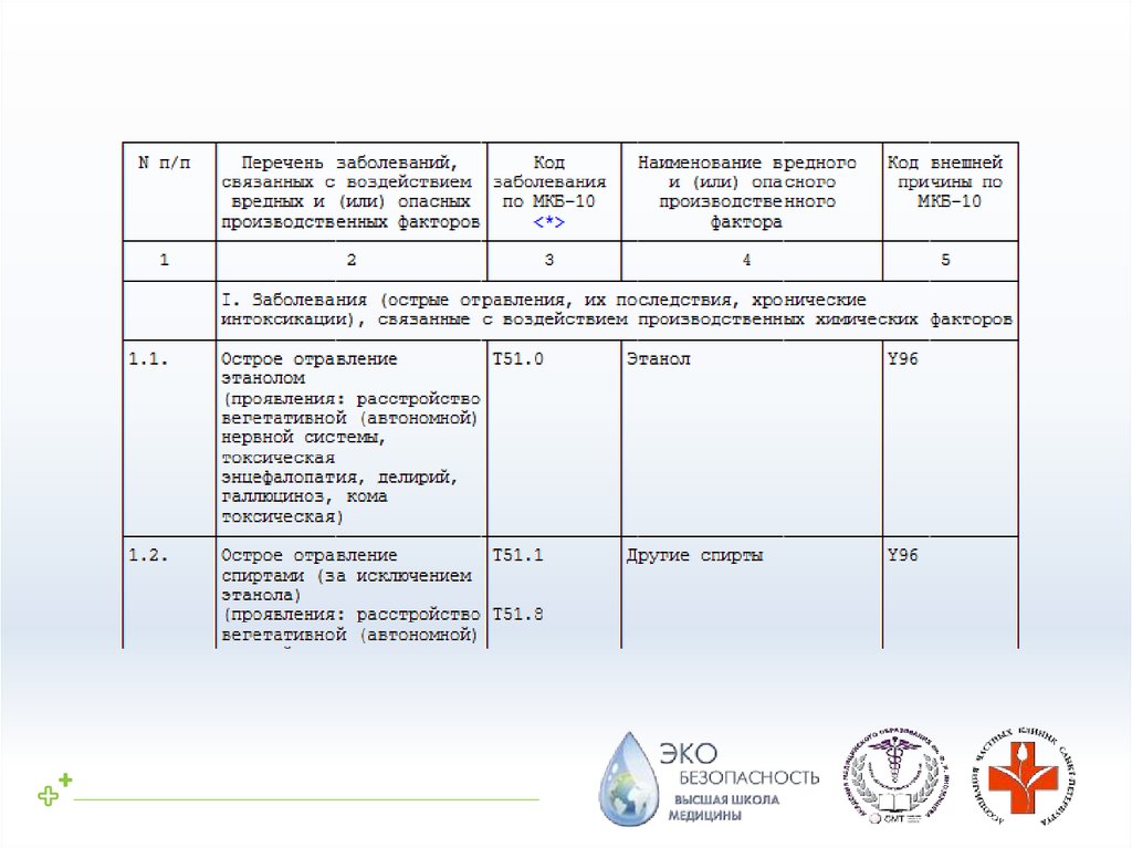 профзаболеваний, выполняющие их функции),