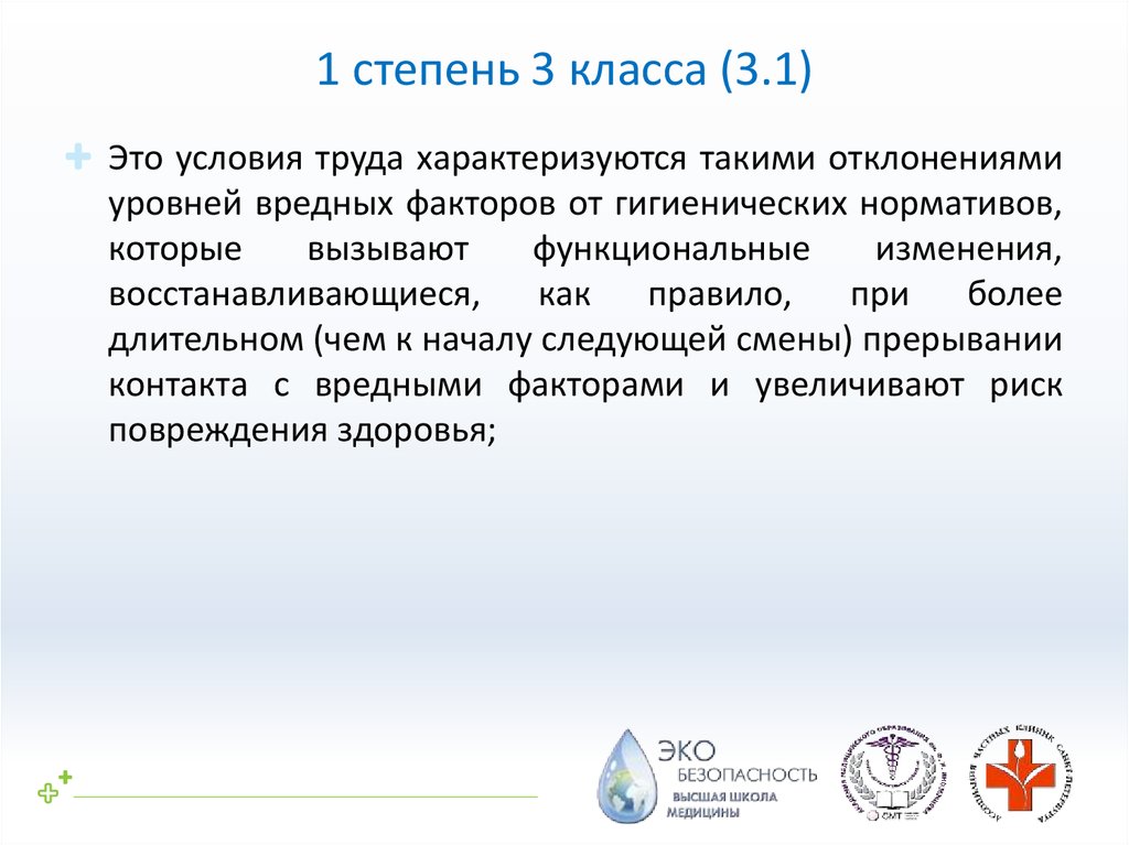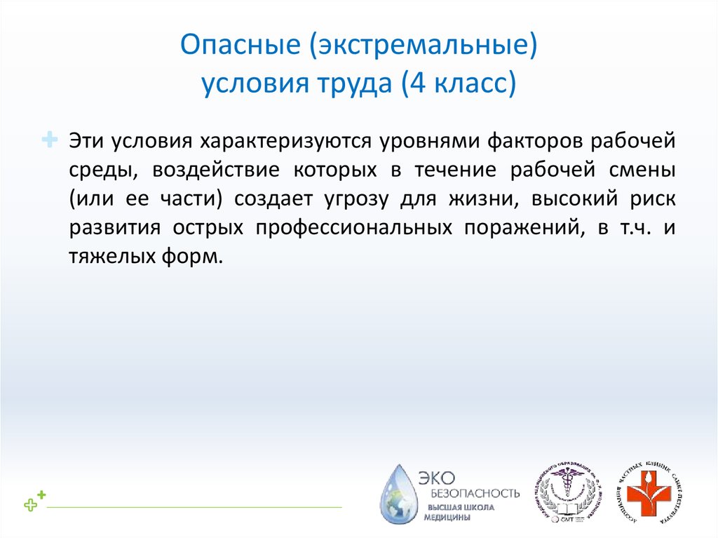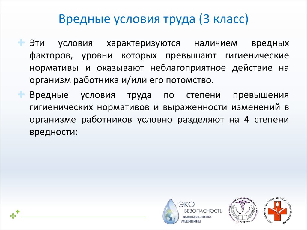отнесенных к вредным и (или) опасным классам, т.е. класс условий