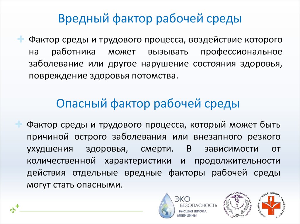 воздействия вредных и (или) опасных производственных факторов. По