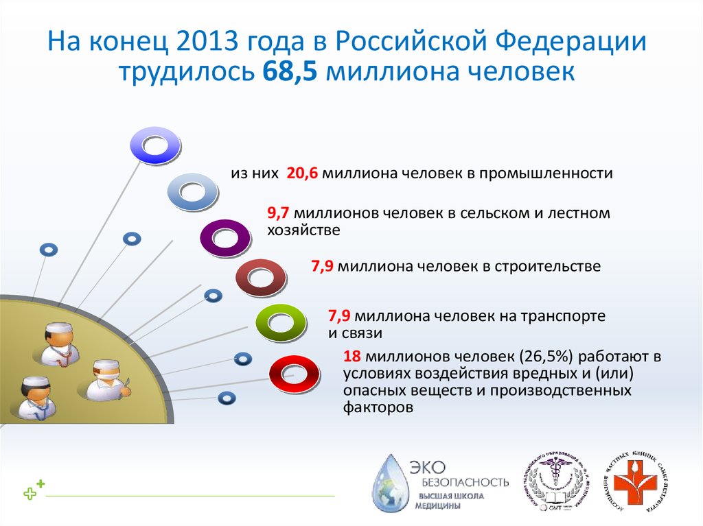 10 – ФМБА России, 5 – Роспотребнадзор, 3 – РАМН, 3 - МЗСЦ