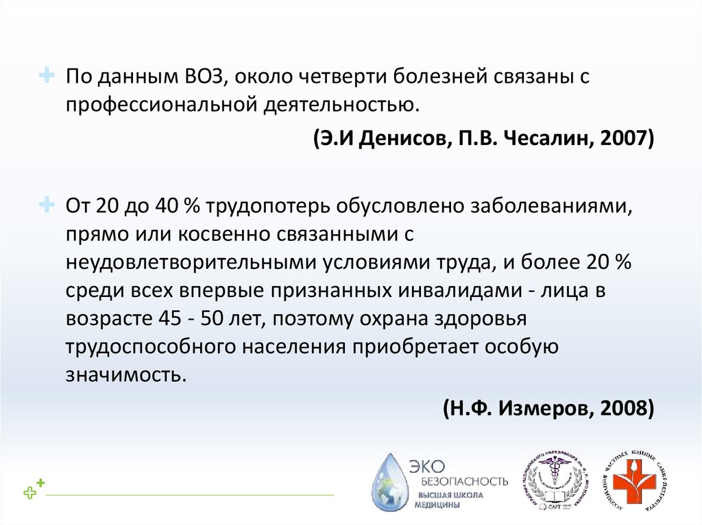 профессиональной деятельностью во вредных условиях труда. По