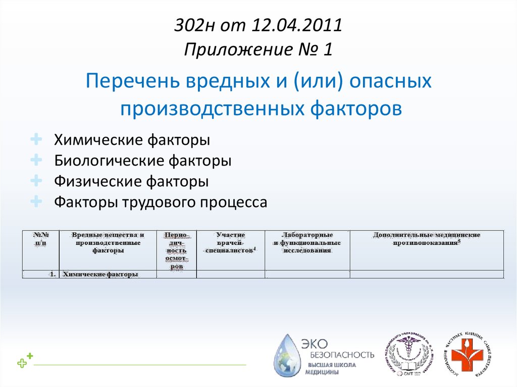 к каждому вредному производственному фактору (по Приказу 302Н