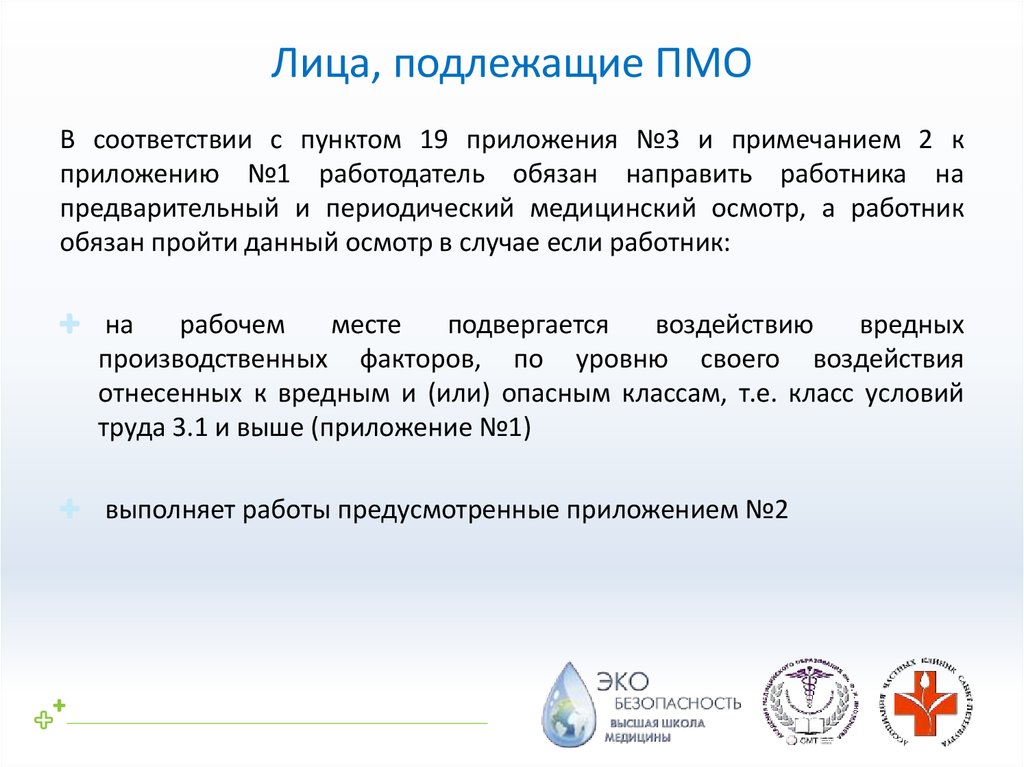 Лица, подлежащие ПМОВ соответствии с пунктом 19 приложения №3 и примечанием 2 к