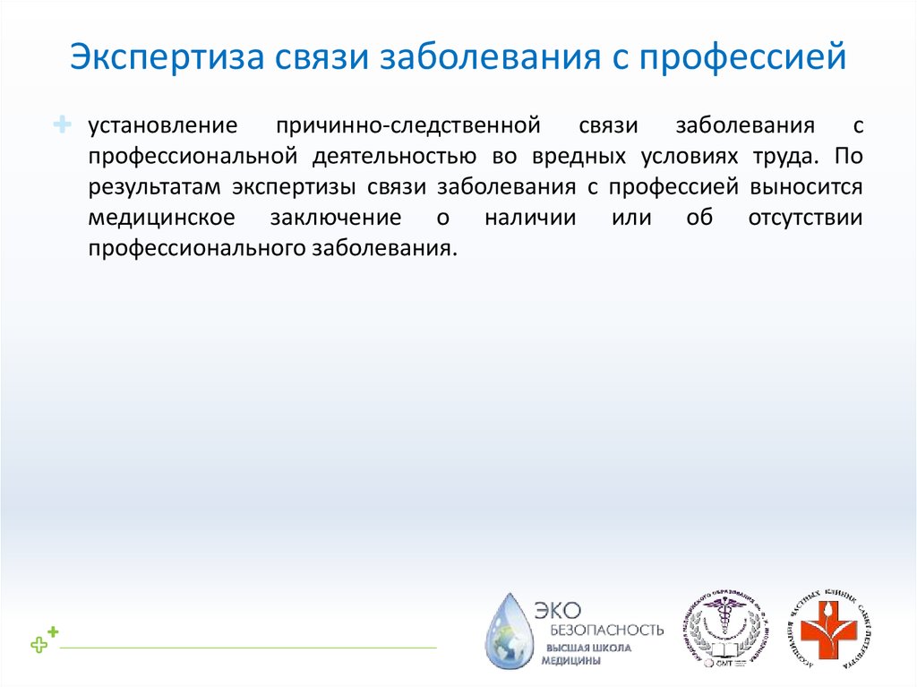 Экспертиза связи заболевания с профессиейустановление причинно-следственной связи заболевания с