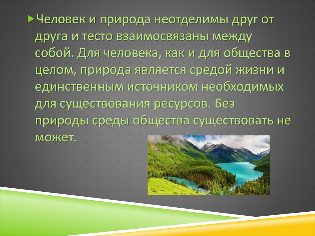 Человек и природа неотделимы друг отдруга и тесто взаимосвязаны между
