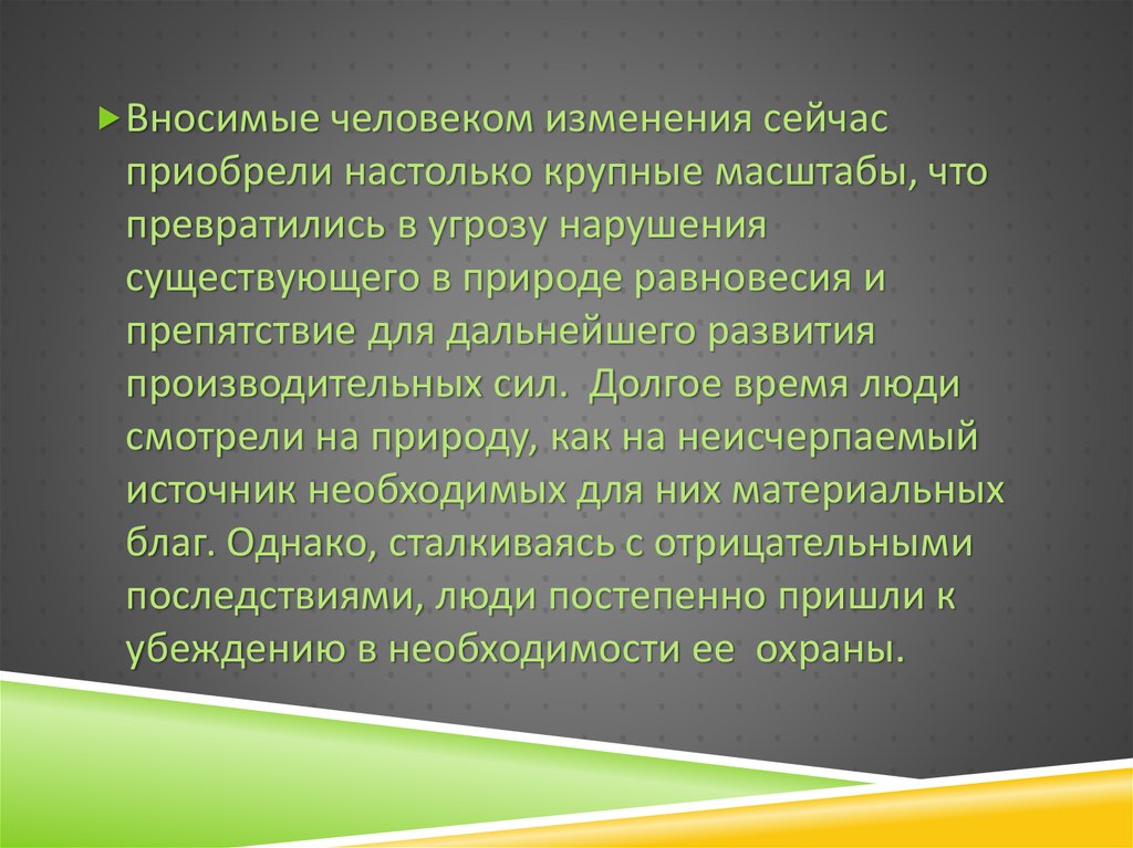 Вносимые человеком изменения сейчасприобрели настолько крупные масштабы, что