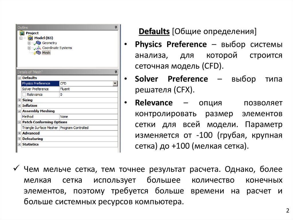 Relevance Center – грубая, средняя и точная сетки (Coarse,Medium, and Fine).