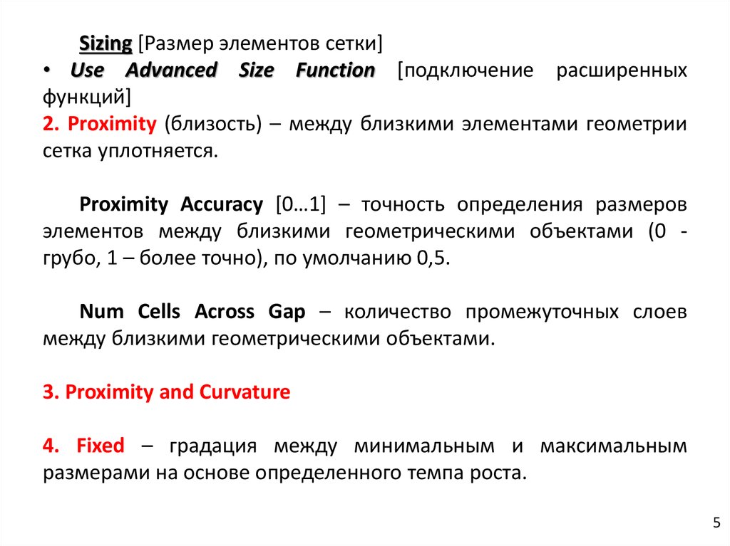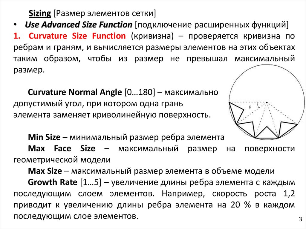 Sizing [Размер элементов сетки]• Use Advanced Size Function [подключение расширенных