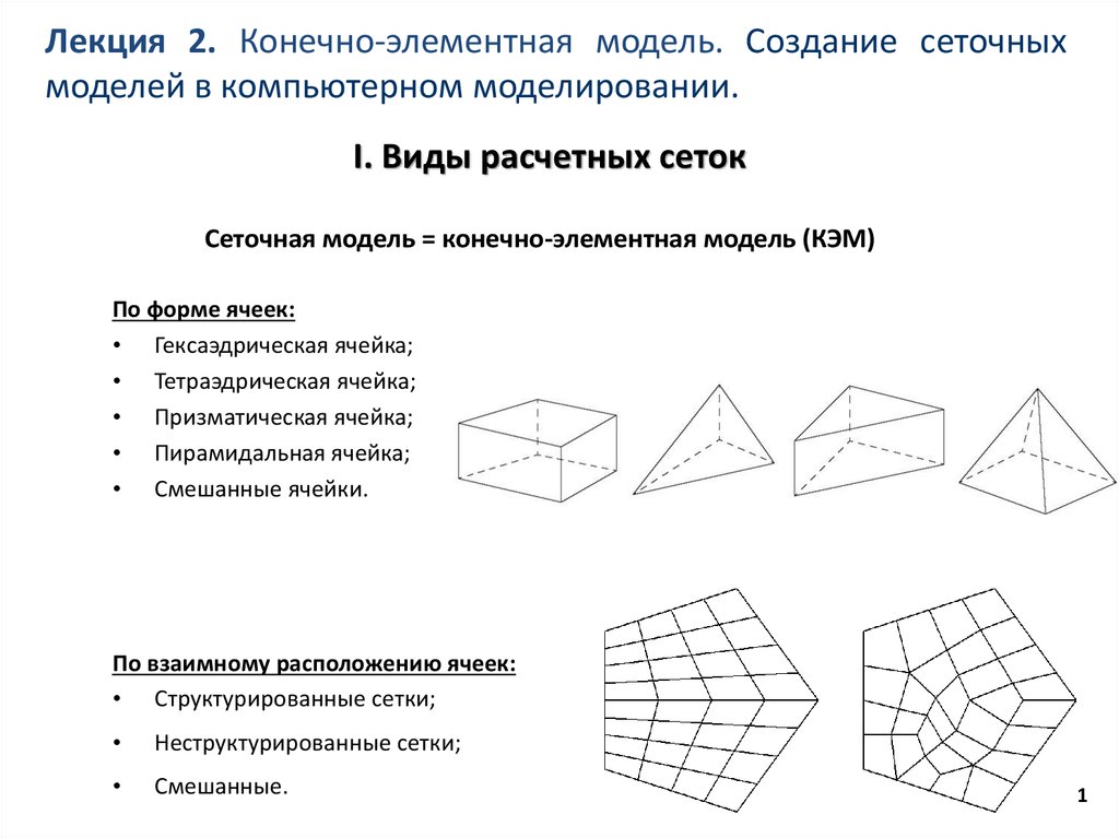 Лекция 2. Конечно-элементная модель. Создание сеточныхмоделей в компьютерном моделировании.