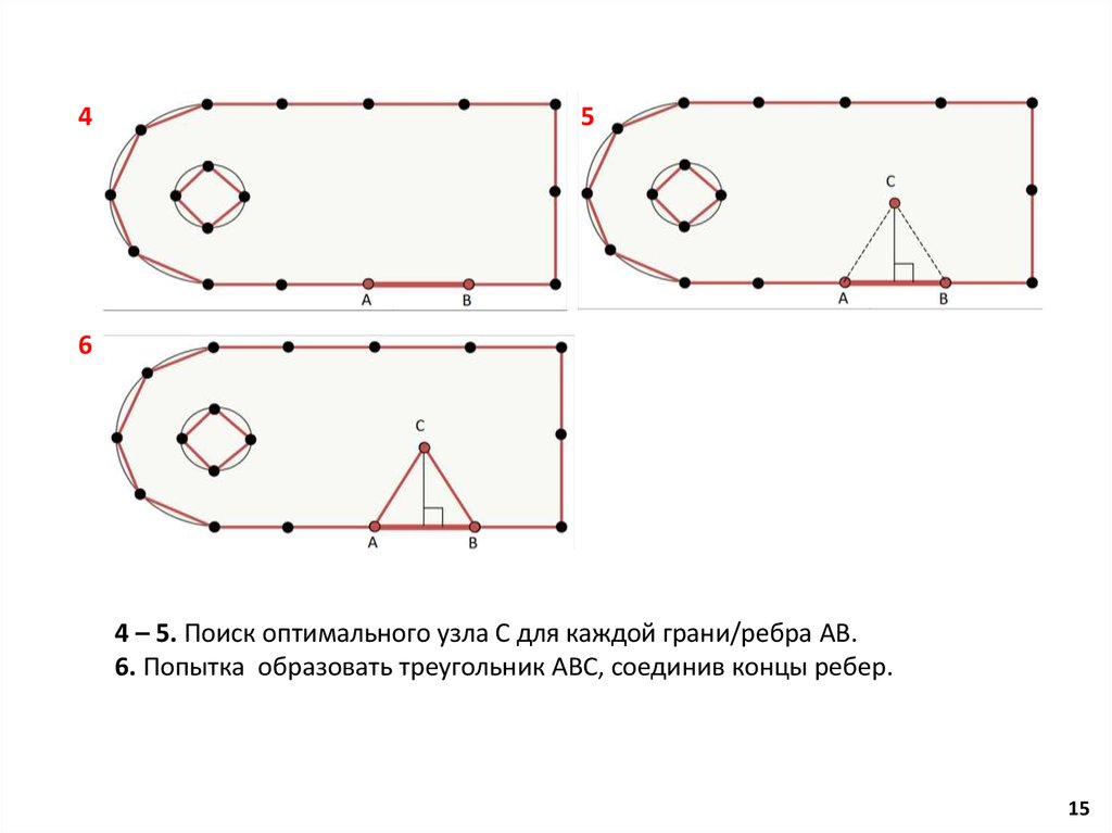 4. Удаление из сетки всех треугольников, среди вершин которых быливспомогательные узлы суперструктуры