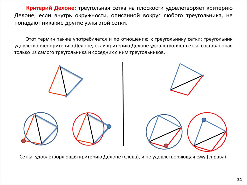 Сетка, удовлетворяющая критерию Делоне (слева), и не удовлетворяющая ему (справа).